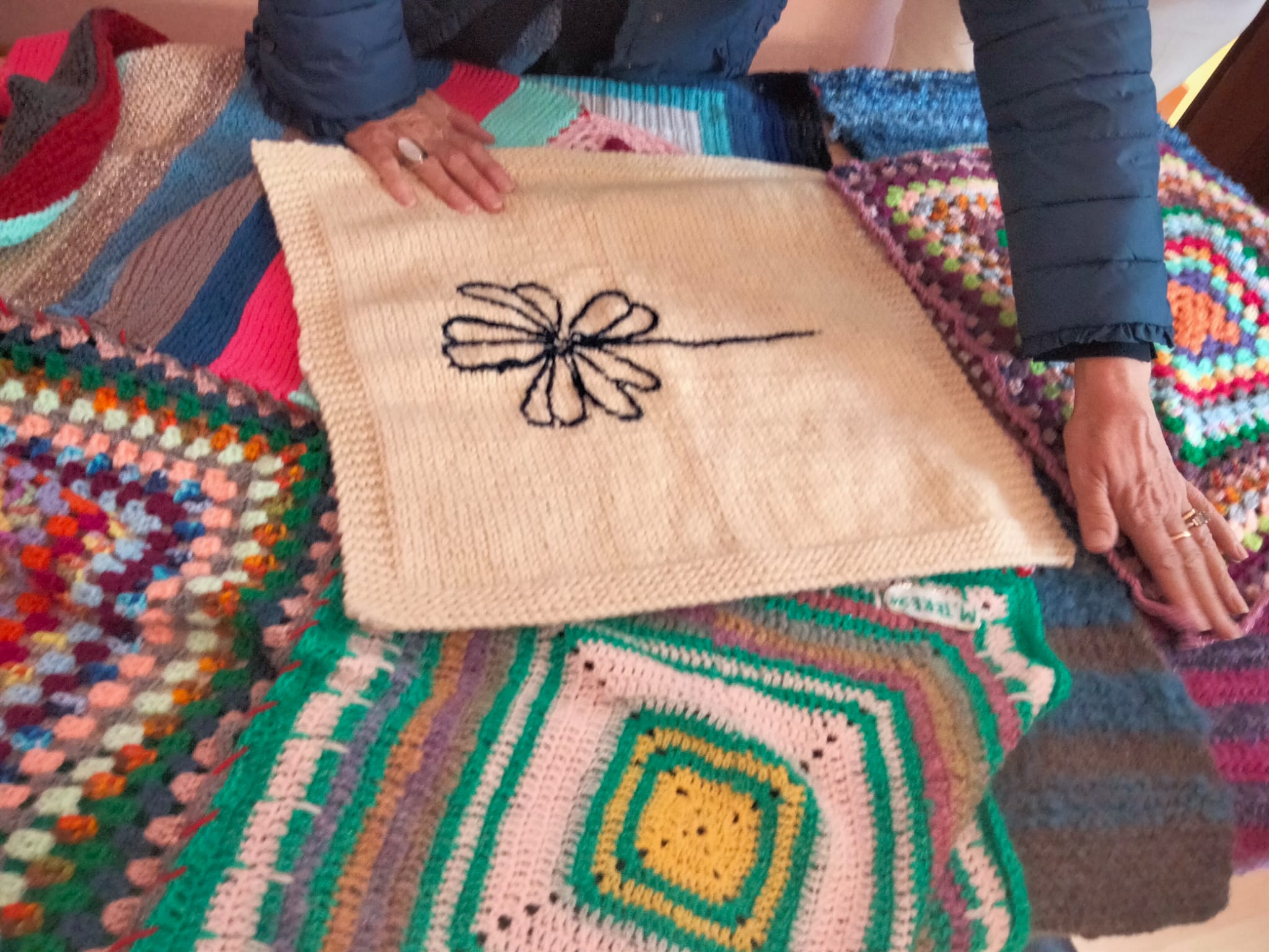 Un quadro di lana bianco lavorato con cura, con il fiore blu simbolo della Cooperativa, un omaggio a tanti fiori spezzati che non vanno dimenticati.Prossimamente il 19-20 novembre, con diversi contributi in manufatti realizzati dalle utenti e dalle operatrici delle Comunità Gardenia e Grancona, saremo presenti in Piazza dei Signori a Vicenza.